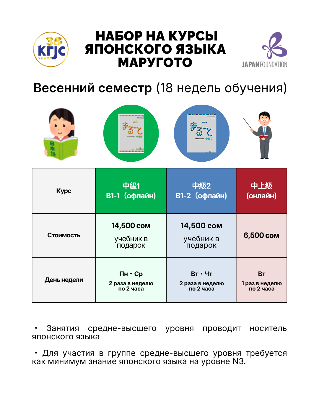 Кыргызско-Японский центр открывает набор на весенний семестр курсов японского языка «Маругото»! Занятия подходят как для начинающих, так и для продолжающих