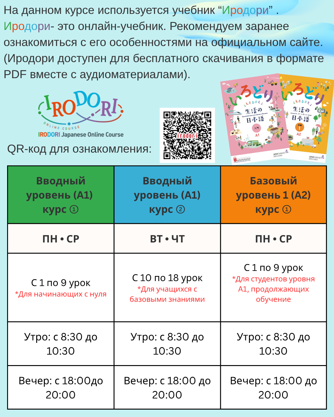 — Базовый уровень 1 (A2), курс 1 — для продолжающих обучение японского языка