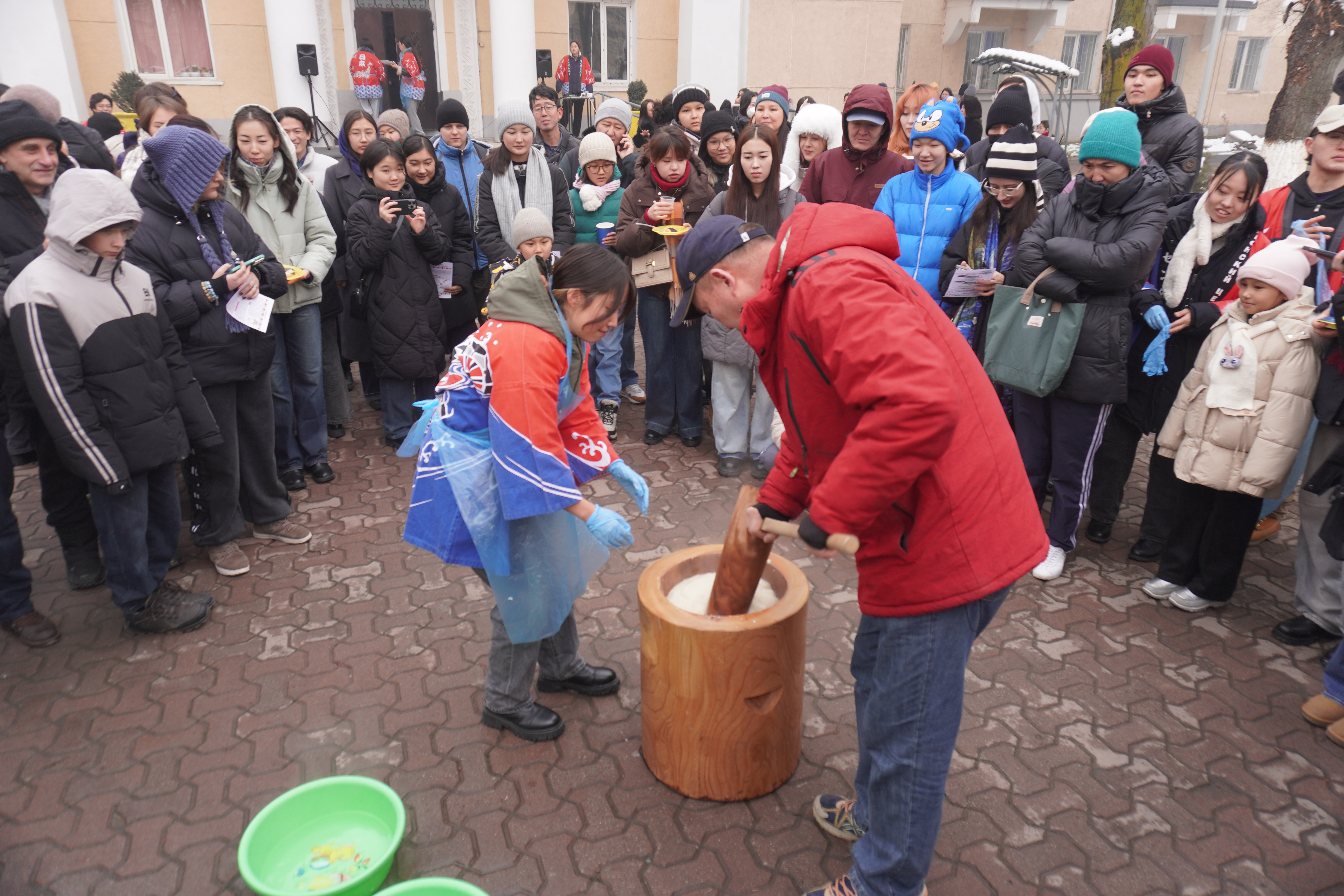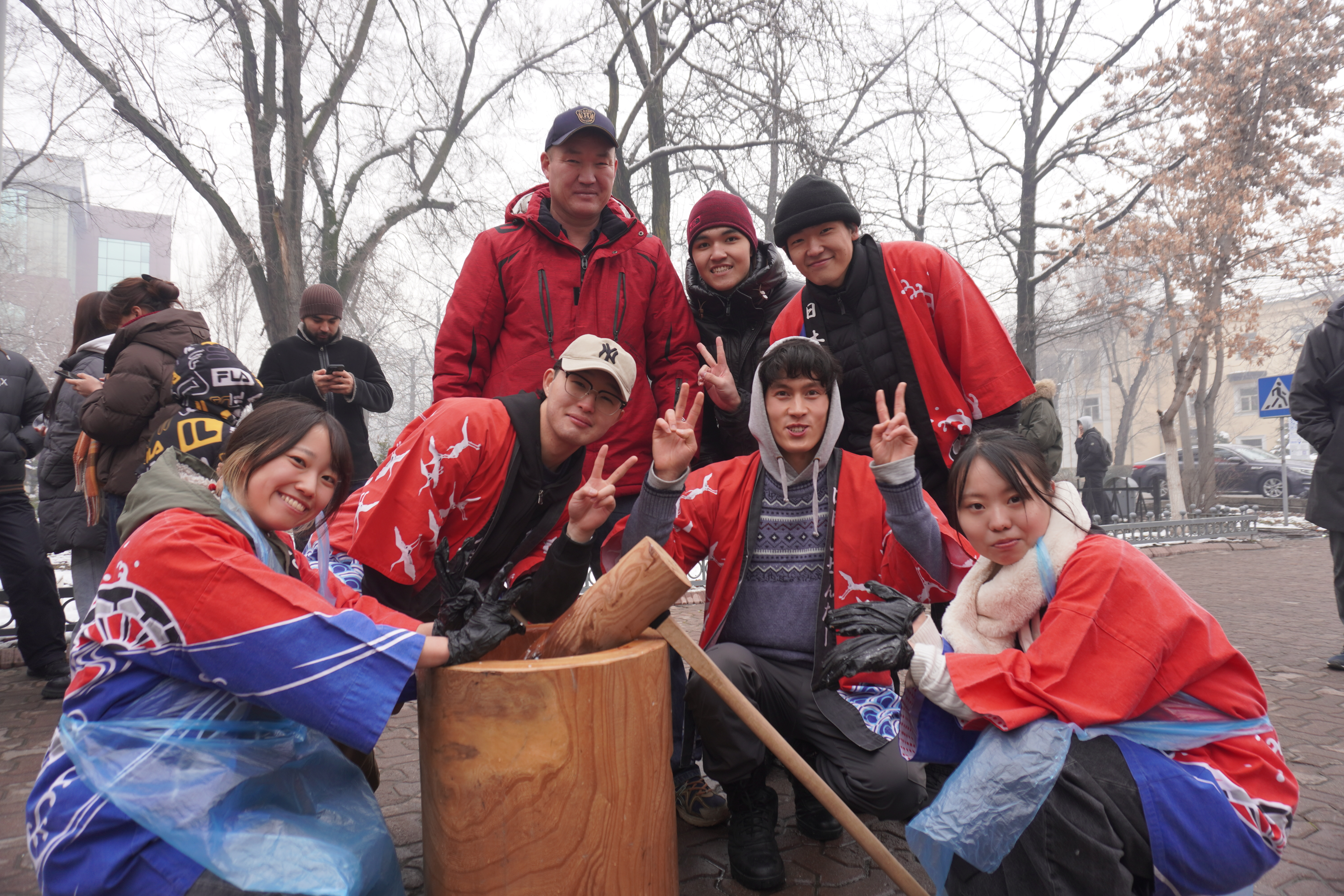 Участники смогли своими глазами увидеть традиционный японский процесс приготовления мочи — клейкого рисового угощения, которое готовят в Японии в канун Нового года.